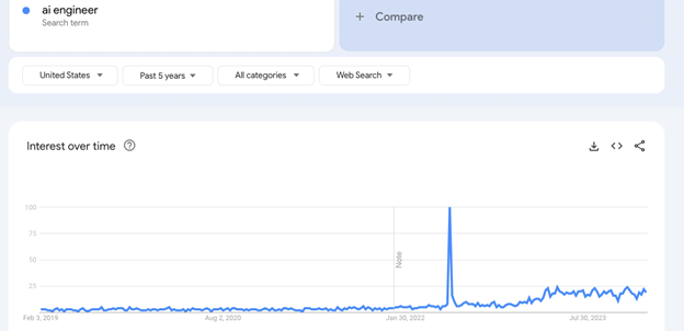 As a defined job title, it didn’t even exist a decade ago. In Google Trends, it basically breaks out into the wild as a search term in 2016 or so, just as new breakthroughs in deep learning and robotics started to trickle out of academia and into the public eye, AI starts to beat human players regularly at tough games like Go, and early versions of generative pre-trained transformers (GPT) were being tested.